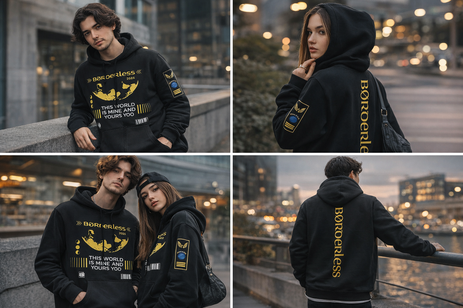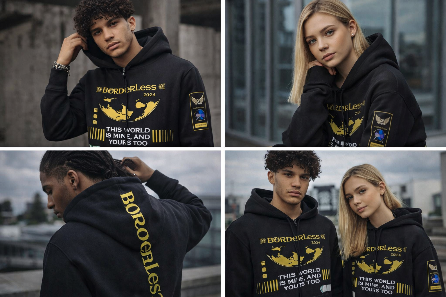 he BØRDERLESS Zip Hoodie redefines high-end streetwear by fusing a globalist aesthetic with functional, avant-garde design. Featuring a structured silhouette and bold graphic elements, this piece isn’t just a hoodie—it’s a statement of identity for those who see the world as a canvas without limits.